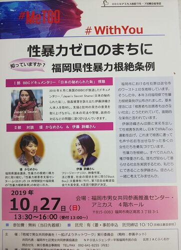 福岡市における性犯罪は政令市のワースト上位を推移しています。 そうしたなか、本年3月福岡県で性暴力根絶条例が公布されました。 伊藤詩織さんは顔を実名を出して性被害を告発、日本で#Me Too運動を広げ、これまで被害に遭っても声や名前を出せなかった多…