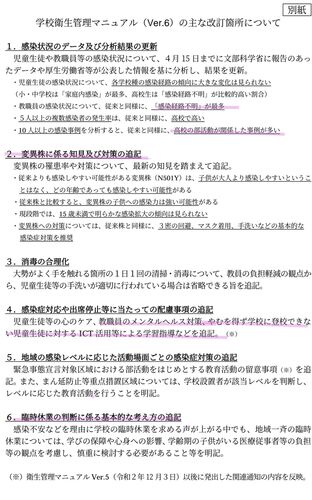 学校でもクラスターが発生し、 北九州市は市HPにて学校名を公表しています。 適切な情報は身を守り、感染拡大防止や安心に繋がりますが、 差別やいじめは論外です。 公表の仕方など、ご意見ありましたらお声をお寄せ下さい。 学校衛生管理マニュアル改定版 …