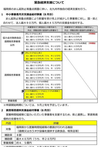 飲食店の皆様 8/2からのまん延防止措置などへの協力に対する協力金を申請下さい。 ★協力金の先渡しが出来ます ★措置区域で酒提供を止め営業時間を短縮する飲食店には、家賃月額の2/3で上限20万円の家賃支援金が加算されます。 現在、5月〜7月分の申請受…